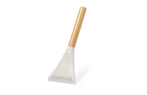 Le grattoir pare-brise personnalisé raclette anti-givre "Nigex" est un produit pratique et écologique, idéal pour les entreprises souhaitant offrir un objet publicitaire utile et respectueux de l'environnement. Fabriqué en bambou et fibre de blé, ce grattoir à glace combine robustesse et durabilité. La poignée, en bambou, assure une prise en main confortable et efficace. La zone de grattage, réalisée en fibre de blé, est conçue pour éliminer rapidement le givre tout en minimisant les rayures sur le pare-brise. Ce grattoir se distingue par sa forme de pelle, intégrant une partie nettoyante et une scie pour une efficacité maximale.