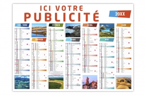 La personnalisation du calendrier est incluse, avec un marquage en une couleur dans la zone de repiquage prévue à cet effet, située dans la partie blanche. Cela permet de mettre en valeur votre logo ou tout autre élément graphique distinctif de votre marque. Ce produit est disponible uniquement par multiples de 100 unités, ce qui garantit un excellent rapport qualité-prix, avec des tarifs dégressifs pour des quantités plus importantes.