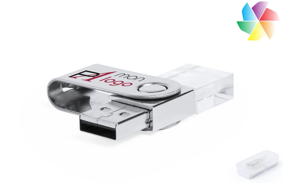 Avec une capacité de 16 Go, cette clé USB offre un espace suffisant pour le stockage et le partage de fichiers numériques tels que documents, photos et vidéos. Lorsqu’elle est connectée à un port USB, son LED blanche intégrée s’illumine, ajoutant une touche moderne et raffinée à l’expérience utilisateur. Ce détail lumineux met également en valeur la personnalisation possible sur le corps de la clé, qu’il s’agisse d’un logo, d’un slogan ou d’un message publicitaire.