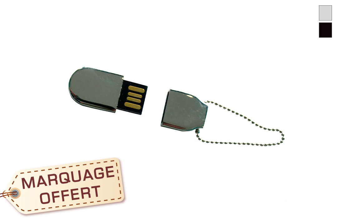 La Chic est une clé USB avec coque design en métal coloré brillant qui se décline en 2 coloris, noir ou argent. Cette clé USB en métal coloré brillant peut être personnalisée avec votre publicité en sérigraphie ou en gravure pour un résultat plus élégant. Une clé USB avec coque design métal publicitaire personnalisée qui est disponible dans 8 capacités différentes allant de 512 mo à 64 go. Cette clé USB personnalisable haut de gamme en métal est compatible avec les systèmes d'exploitations Windows et Mac. Nous garantissons nos clés USB personnalisées sont garanties 12 Mois. Le marquage est inclus dans le tarif sur la base de 1 couleur recto / verso. Personnalisez votre clé USB en gravure laser pour un résultat élégant et une campagne de marketing efficace avec un objet personnalisé de grande qualité. Pour vos goodies d'entreprises, commandez cette clé usb en métal coloré brillant publicitaire personnalisée pas chère imprimé avec votre logo gravé pour un résultat optimun.