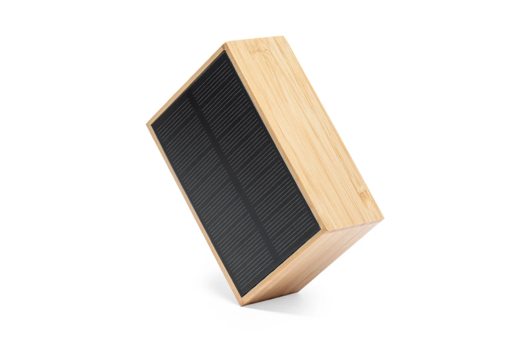 Cette enceinte Bluetooth® personnalisable "Laurens" est une haut-parleur publicitaire à panneaux solaires se distingue par son design écologique et sa fonctionnalité moderne, idéale pour les entreprises cherchant à marquer les esprits avec un objet publicitaire utile et respectueux de l'environnement. Fabriquée en bambou issu de forêts durables et certifié FSC™, cette enceinte solaire allie performance et responsabilité écologique. Sa surface en bambou permet une personnalisation soignée, offrant ainsi une opportunité unique de mettre en avant un logo ou un texte distinctif, créant un impact durable sur les clients et collaborateurs.