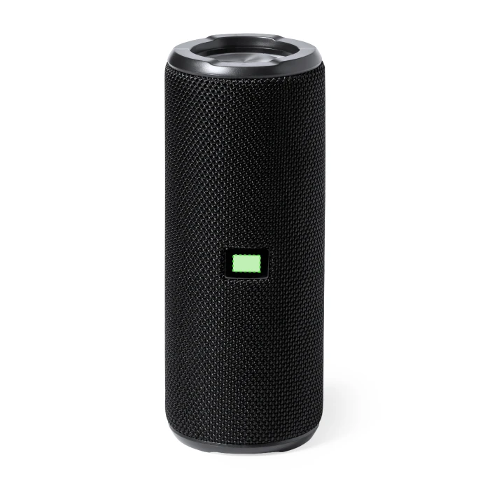 Conçue pour être portable, l'enceinte "Roby" est fabriquée en matériau durable doublé de polyester, assurant une résistance optimale tout en restant légère avec un poids de 460g. Son format compact, avec une hauteur de 18,6 cm et un diamètre de 7,5 cm, la rend facilement transportable, complétée par une poignée intégrée. La connexion Bluetooth 5.0 garantit une compatibilité universelle avec une large gamme de dispositifs, tandis que le panneau de commande intégré permet un contrôle aisé de la musique et des appels, grâce à la fonction mains libres.