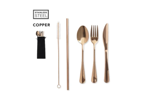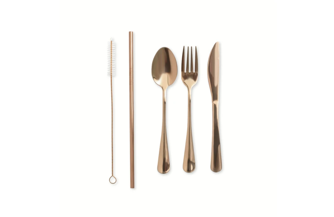 Ensemble de couvert repas personnalisé Malesh set 5 pièces en acier cuivré