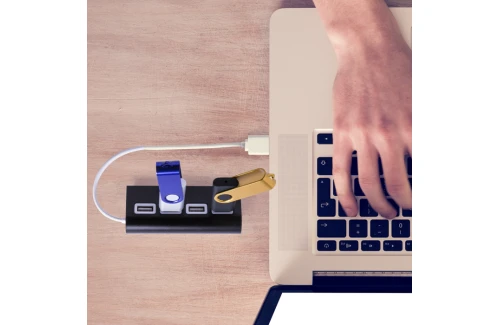 Le Hub USB personnalisé bicolore en aluminium "Weeper" est un produit publicitaire élégant et pratique, idéal pour toute entreprise souhaitant promouvoir sa marque avec style. Conçu en aluminium, ce hub USB se distingue par son design bicolore raffiné, offrant une touche de modernité à votre espace de travail. Ce hub USB est non seulement esthétique mais aussi extrêmement fonctionnel, intégrant quatre ports USB 2.0 permettant de connecter facilement plusieurs appareils simultanément.