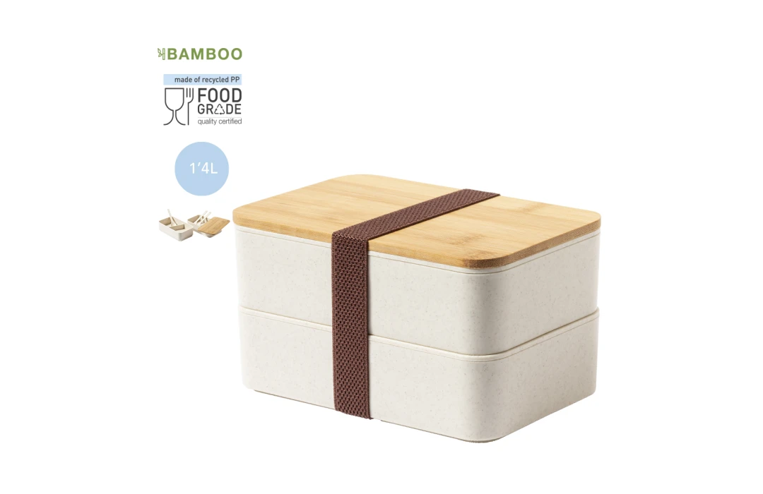 La lunch box personnalisée "Bawar" est une boîte repas sans bisphénol A, idéale pour ceux qui recherchent un produit à la fois pratique et sain. Conçue en PP résistant veiné et dotée d'un couvercle en bambou, cette lunch box allie robustesse et élégance. Elle dispose de deux compartiments, chacun d’une capacité de 700 ml, permettant de séparer les aliments et de maintenir une organisation optimale de vos repas. La capacité totale de 1,4 litre offre amplement d'espace pour vos déjeuners ou collations.