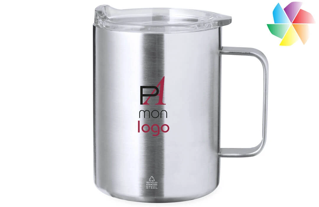 Ce mug isotherme publicitaire est parfait pour afficher votre logo ou un message spécifique, offrant une visibilité continue de votre marque. Il s'agit d'un excellent choix pour ceux qui recherchent un produit à la fois pratique et respectueux de l'environnement. L'acier recyclé n'est pas seulement durable, mais aussi très apprécié pour ses qualités de réutilisation, ce qui fait de ce mug un choix responsable pour les entreprises soucieuses de leur impact écologique.