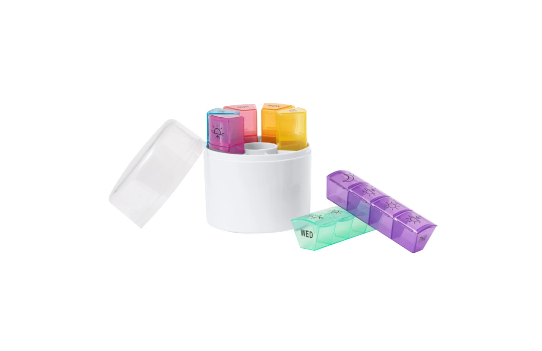 Le pilulier personnalisé hebdomadaire et journalier "Ablix" étui cylindre est un accessoire pratique et essentiel pour organiser vos médicaments. Conçu pour faciliter la gestion quotidienne des pilules, ce pilulier se distingue par son design compact et fonctionnel. Avec ses 7 compartiments différenciés par couleur et sigle, il permet d'identifier rapidement chaque jour de la semaine. Chaque compartiment est subdivisé en 4 cases séparées correspondant aux différentes parties de la journée, assurant ainsi une prise de médicaments précise et ordonnée.