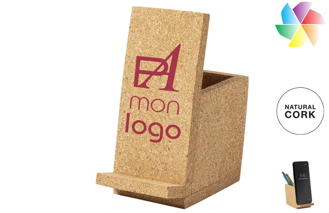Pot à crayon personnalisé Prosan en liège avec support de smartphone