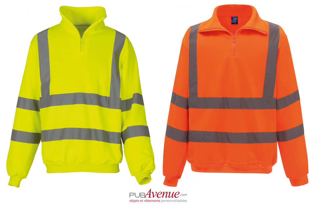 Sweat-shirt zippé haute visibilité à bande réfléchissante