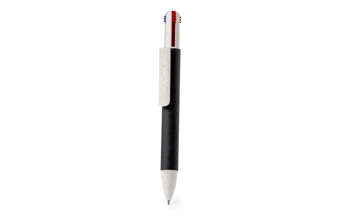 Stylo publicitaire 4 couleurs en carton recyclé naturel et fibre de blé Surtum