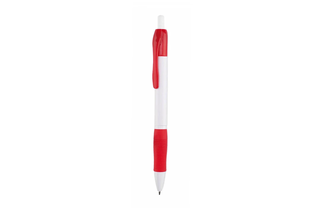 Stylo publicitaire plastique corps blanc à clip et grip de couleur Zufer