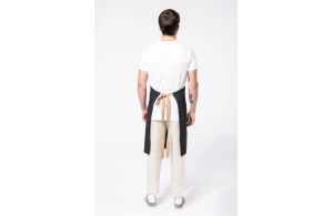 Ce tablier allie qualité et écologie, avec une boucle de réglage en métal au niveau du cou et des lanières en coton recyclé. Chaque pièce est unique, en raison de légères variations de couleur dues au processus de recyclage, et peut être lavée à 60°C pour une propreté impeccable.