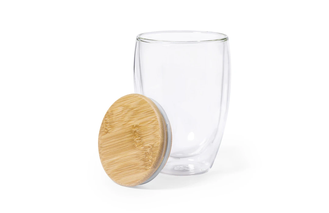 Tasse thermique personnalisé en verre avec couvercle en bambou Tobby 350 ml