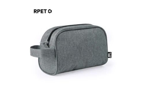 Le logo RPET est discrètement placé sur l'étiquette extérieure, mettant en avant l'engagement écologique du produit sans compromettre son esthétique. La personnalisation de la trousse "Harese" avec votre logo ou un texte spécifique la transforme en un objet publicitaire efficace, parfait pour renforcer la visibilité de votre marque tout en offrant un cadeau utile à vos clients ou collaborateurs.