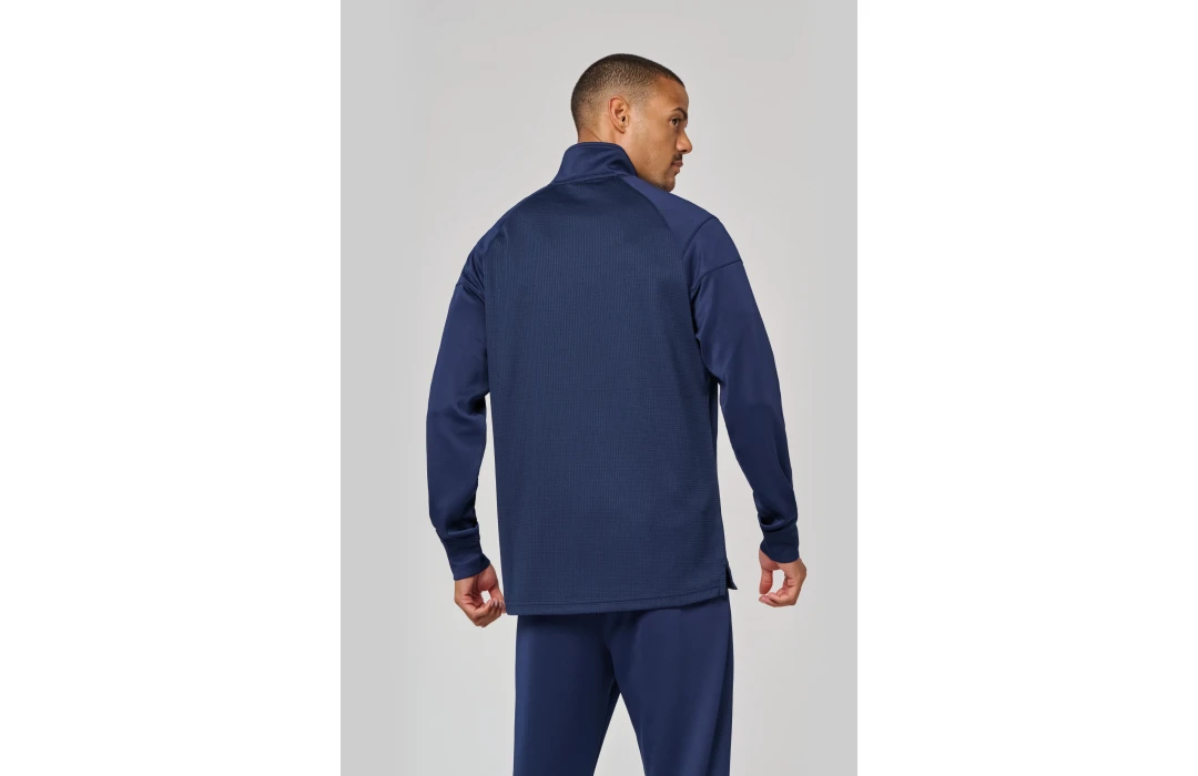 Offrant un excellent rapport qualité-prix avec des tarifs dégressifs, cette veste est une solution économique pour équiper les membres de votre club, tout en affichant fièrement vos couleurs. La coupe droite, le col zip inversé pour un confort supérieur, et le dos rallongé avec fentes latérales d'aisance sont des détails qui font de cette veste un incontournable pour toute activité sportive.